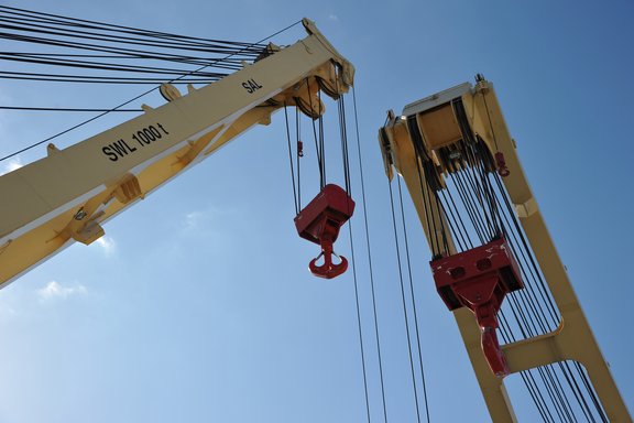 Dual 1,000 t cranes (up to 2,000 t in tandem) with optional Fly-Jib extensions for added height and reach.